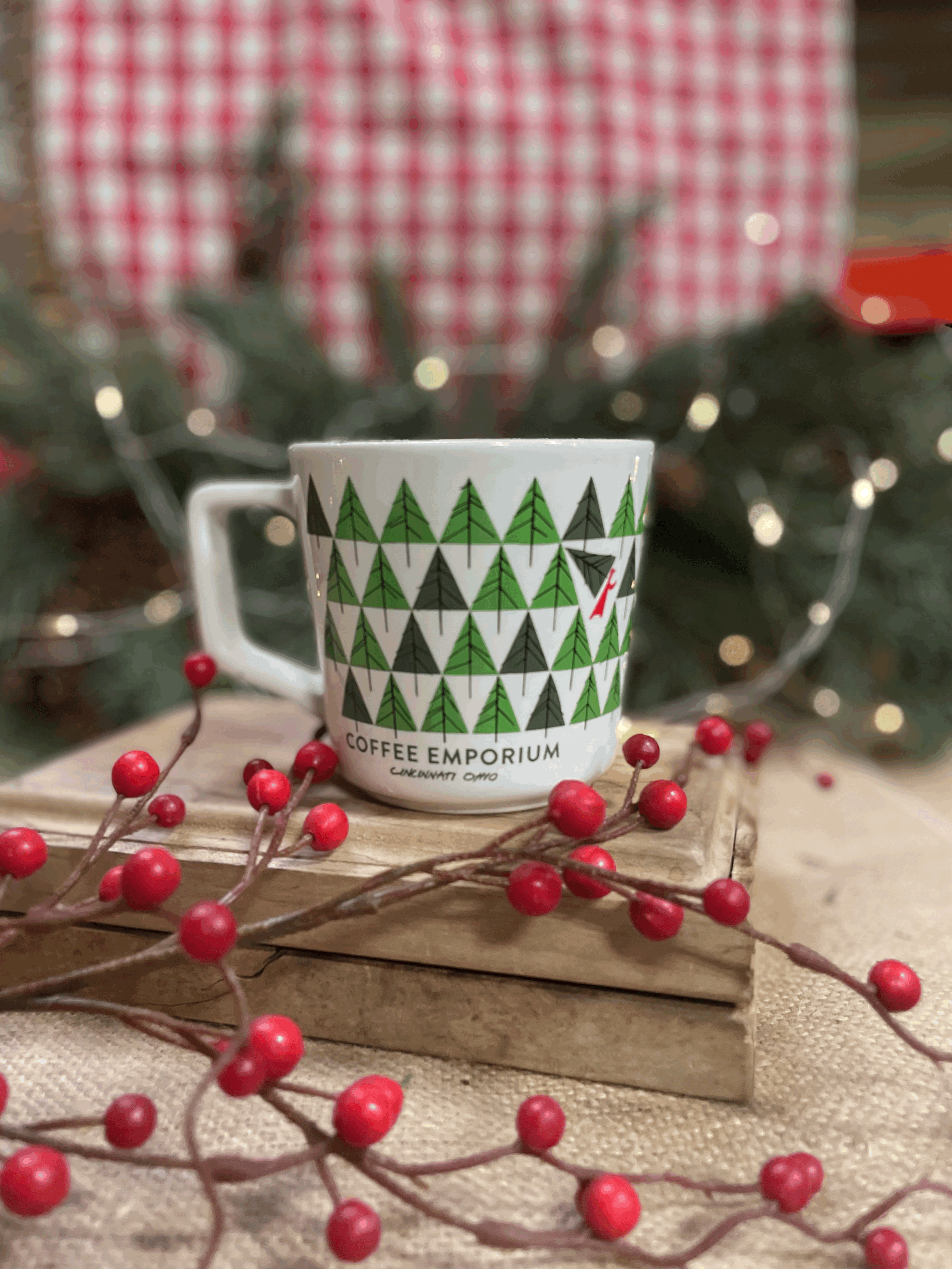 A new mug design for holiday season! A beautiful and functional angular mug covered with our beloved Christmas trees and - *gasp* - one’s been chosen!